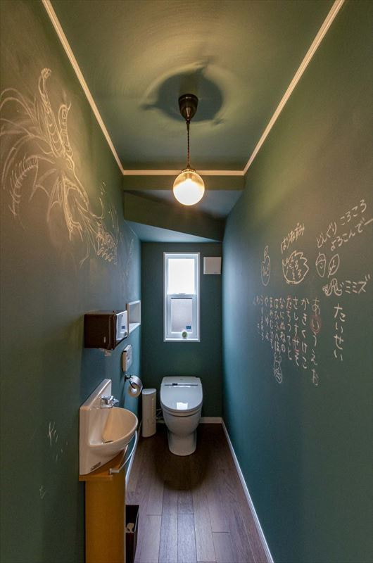 その他にも、ボルダリングの壁や黒板の壁になっているトイレ、ミッキーの形の玄関のニッチなど、いたるところに楽しさ満載の家でもあります。