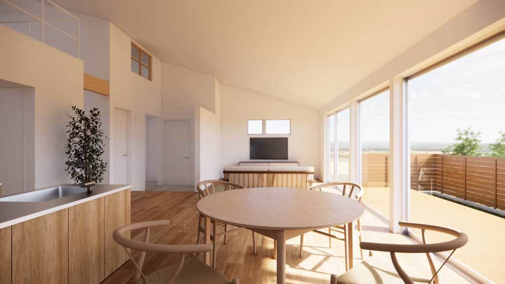 「平屋プラスONE」は、SE構法の強みを生かした勾配天井の開放的な大空間リビングと、高断熱性能による省エネで快適な暮らしを実現できる家です。