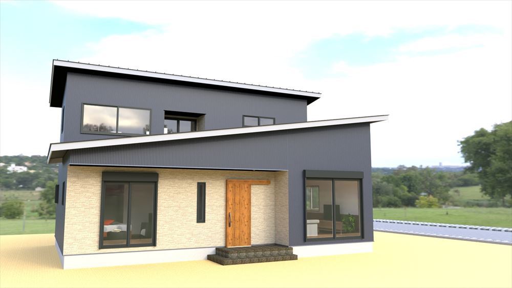 今回の建物の特徴は、黒の金属サイディングを使った外観デザインです。窯業系サイディングを組み合わせたことで、奥行と陰影のある外観になっています。