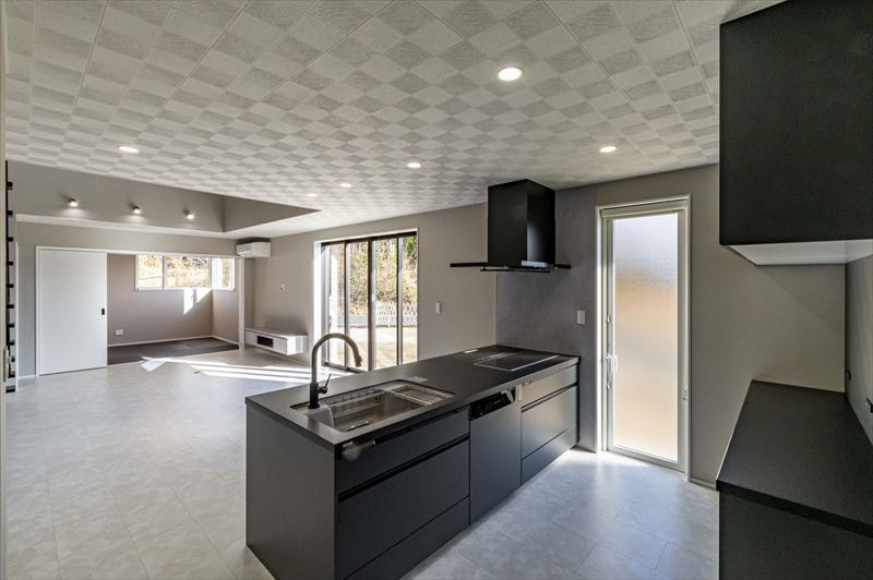 キッチンはペニンシェラ型のオープンなものにして、お子さんと遊びながら料理のできるスタイルでこれからの暮らしがワクワクするキッチンとなっています。