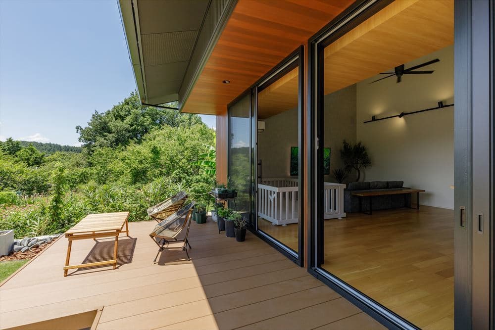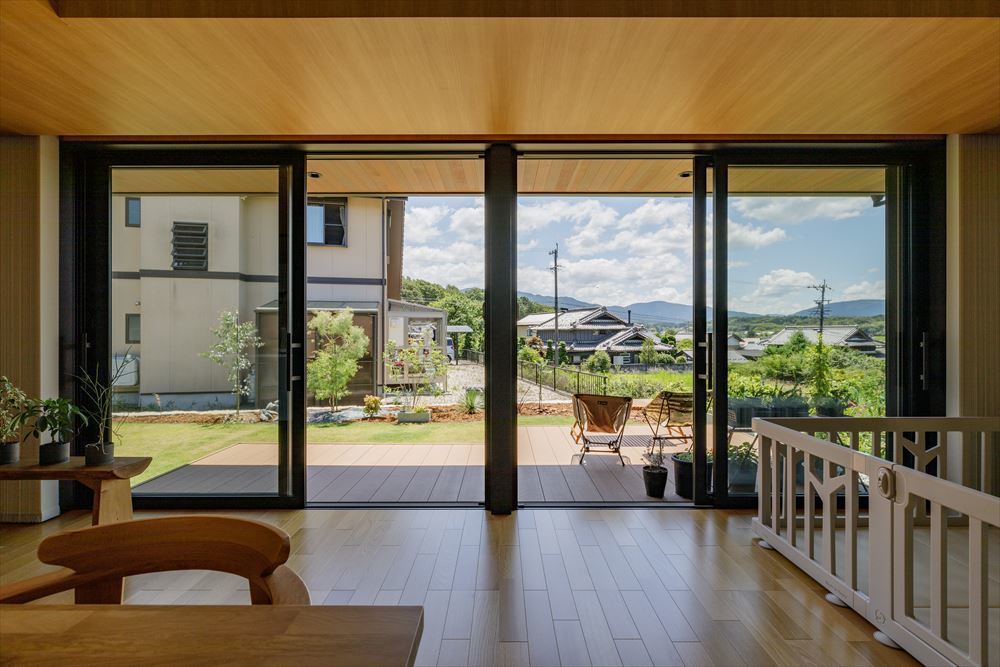 ワークスペースと小窓から眺める故郷の山は快適な仕事環境を生み出し、南に面した大開口は景色を楽しめます。