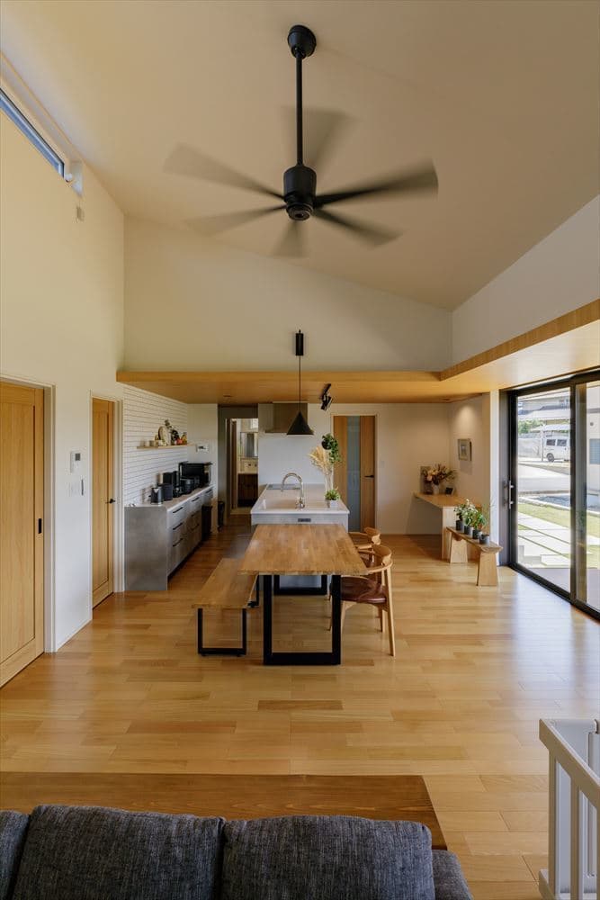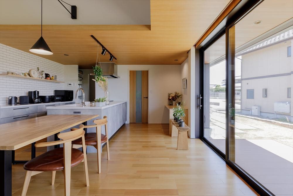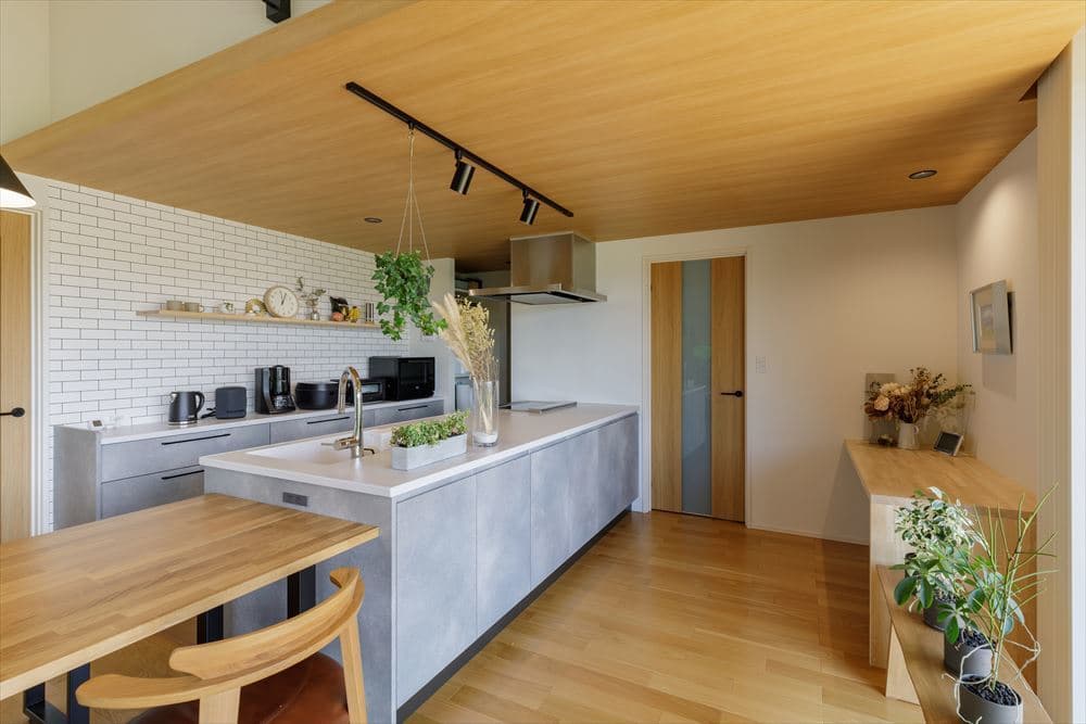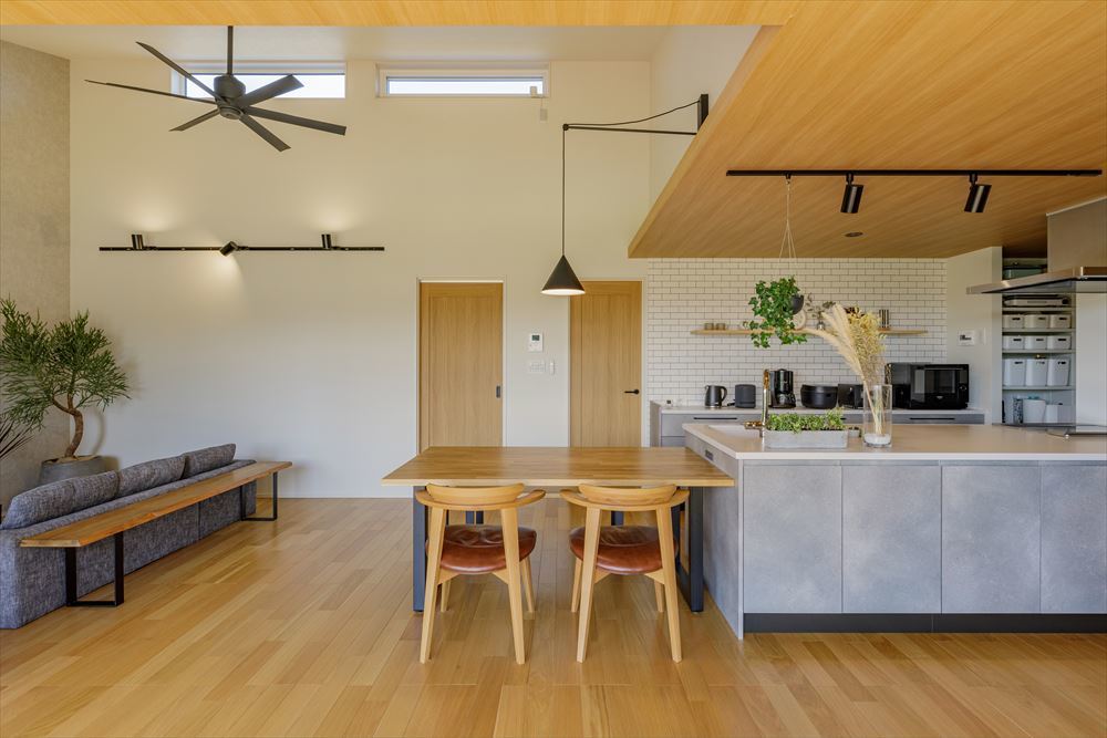 リビングの天井は部分と勾配で高くなっている部分と、空間に変化のある間取りも特徴的です。
