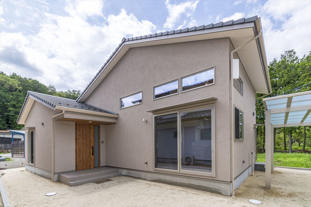 内装は、お客様のこだわりである自然素材の洋しっくい塗の壁、外壁はジョリパット仕上げと、ナチュラルなテイストのデザインとなりました。