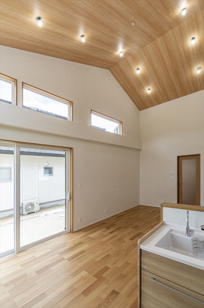 光を家の中に取り込み、明るいリビングを実現するかをテーマとした平屋の家です。