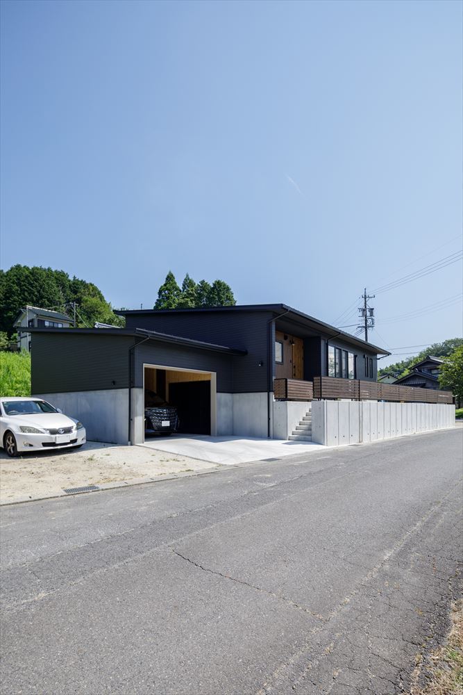 平屋のガレージハウスの家