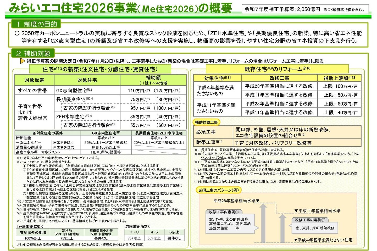 「みらいエコ住宅2026:GX志向型住宅」補助金が発表されました NEW