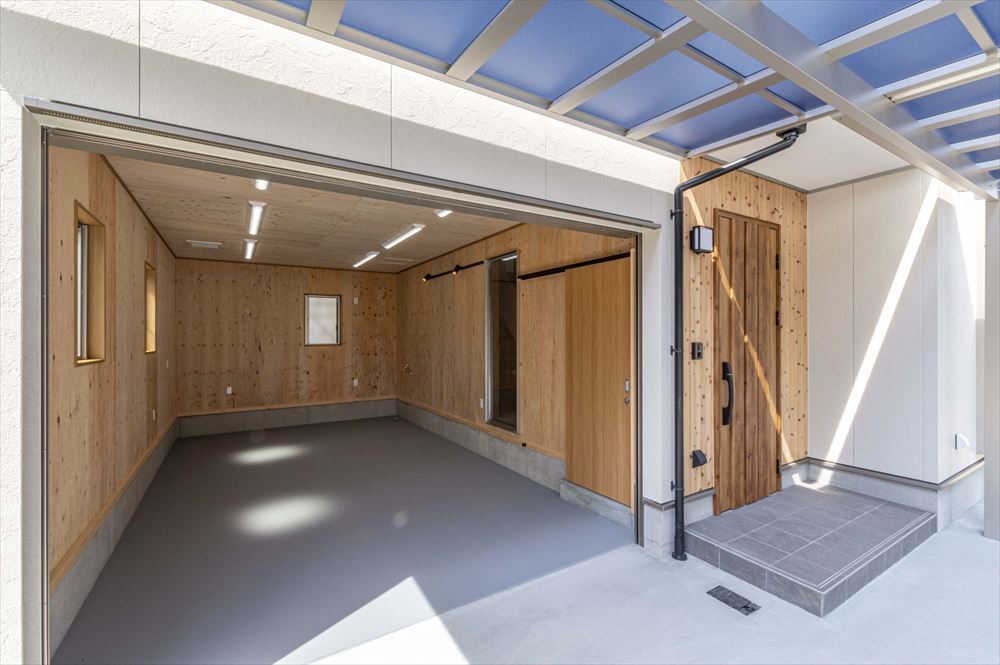 頑丈な構造躯体だから可能にする安全な広々とした空間に、大事な愛車を格納して、家の中からの導線を確保することで、とても使いやすいガレージになります。