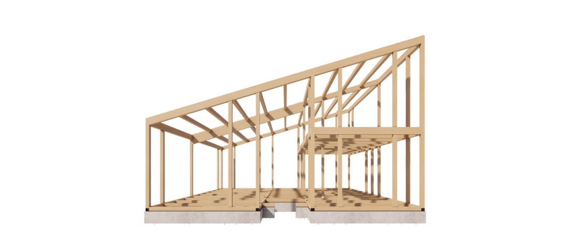 「1LDK」(主寝室+LDK)の平屋に、屋根勾配を片流れにしてコストを大きく増やさずに子供部屋をプラスし、2LDK~4LDKの家を実現します。
