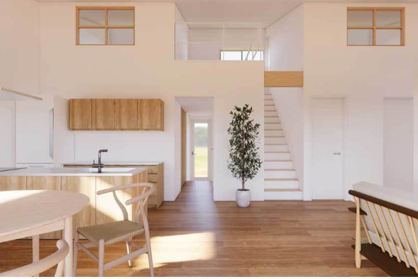 大空間リビングと空気つながり家族の息遣いを感じる暮らしが可能です。