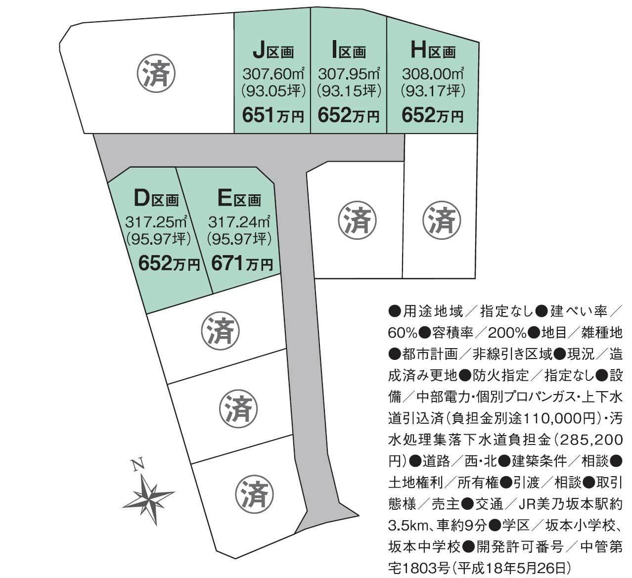 | 価格 | D区画:652万円 E区画:671万円 H区画:652万円 I区画:652万円 J区画:651万円 |