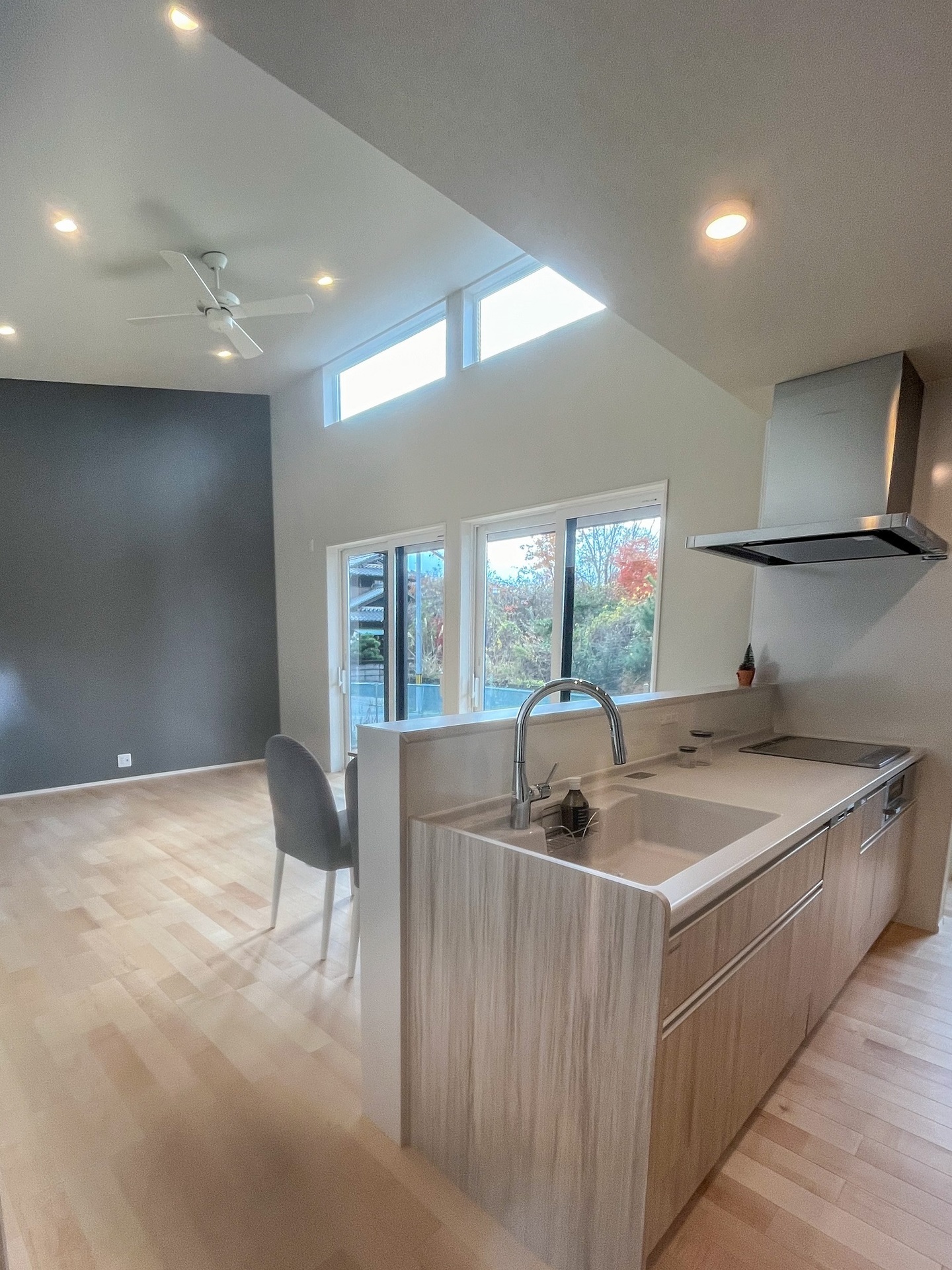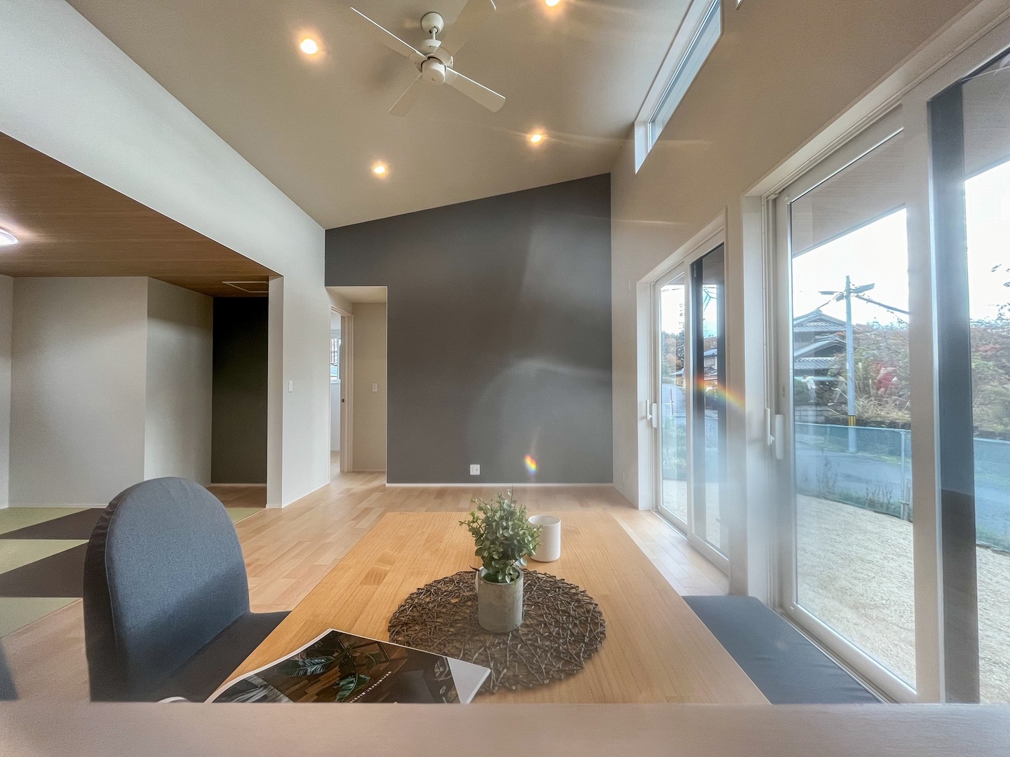 UA値も0.48と等級6に迫る優れた性能と、南面の大きな窓からの太陽の光を取り入れるパッシブデザインで、この寒さが厳しい冬でも快適に暮らせる家を体感することができます。