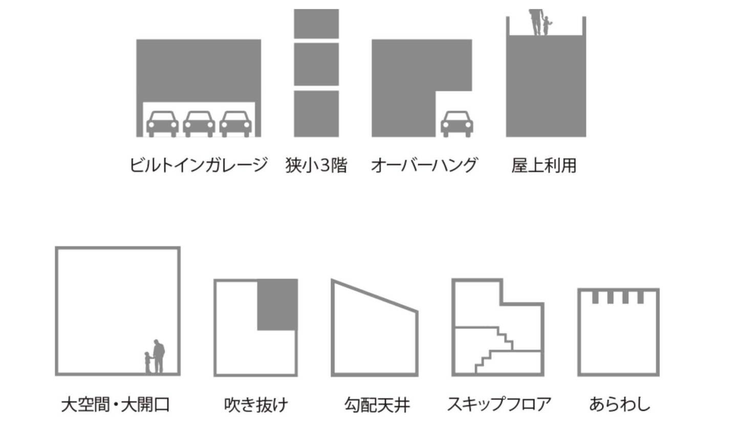 主要な部材は、強度の安定している「構造用集成材」を特殊な金物で強固に接合することで、重量鉄骨造のような「ラーメン構造」の構造耐力を実現しています。その強みを生かすことで、在来木造や2×4工法では困難であった「広々とした開放的なリビング空間」や「明るく大きな開口窓」、「愛車を守るビルトインガレージ」などの空間提案を安全に実現することを可能としています。